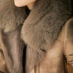 Ovaj luksuzni ženski kaput od janjeće kože kombinira udobnost, stil i toplinu.