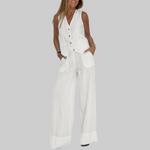 Dvodelni laneni set Martina savršeni je izbor za opuštene i formalnije prigode tijekom ljeta. Njegov elegantan kroj i lagani lan pružaju udobnost i bezvremenski stil – idealan za toplo ljetne dane i elegantne večernje događaje.