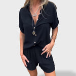 Matilde|Lagan ljetni laneni komplet savršen je izraz prirodne svježine s dozom elegancije. Izrađen od lagane lanene mješavine, ovaj komplet pruža apsolutnu udobnost i elegantan pad — idealno za vruće dane kada su stil i dobrobit na prvom mjestu.