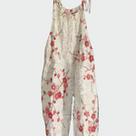 Kombinezon Trešnjin Cvijet odiše elegancijom i spokojem, inspiriran japanskom estetikom. Izrađen od mekog lana, ima bijelu podlogu ukrašenu cvjetovima trešnje u ružičastim i crvenim tonovima, stvarajući romantičan i bezvremenski izgled.