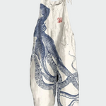 Odjevni predmet "Sombrero de Pulpo en Tela" spaja umjetnost i stil u impresivnom artiklu. Na prirodnoj bijeloj pozadini, dizajn hobotnice u plavoj boji inspiriran japanskim stilom ističe se s nježnim detaljima, stvarajući morsku atmosferu koja privlači sve poglede.