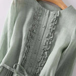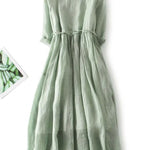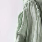Ova duga haljina, jednostavna i elegantna, u nježnoj zelenoj nijansi, odiše svježinom i prirodnom elegancijom. S laganim krojem i lepršavim padom, nježno obavija siluetu i pruža jedinstvenu udobnost tijekom cijelog dana.