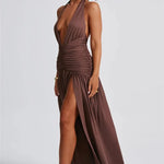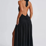 Uz pripijen kroj i lagano rastezljivu tkaninu, Suzy | Dugačka seksi haljina s dubokim dekolteom i prednjim prorezom naglašava svaku tvoju krivulju s dozom sofisticiranosti. Duboki V-izrez i otvorena leđa pružaju dozu smjelosti, uravnoteženu besprijekornom završnom obradom. Idealna je za događanja, zabave ili posebne večeri, kad tvoj nastup treba ostati zapamćen.