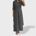 Norellia™ je idealan kratki komplet za one koji traže svježinu s dozom profinjenosti u najtoplijim danima. Izrađen od mekog i prozračnog lana, pruža lagan i lepršav osjećaj koji nježno prati svaki tvoj pokret. Opuštena košulja i kratke hlače stvaraju suvremenu i ženstvenu siluetu — savršenu za mirne izlete, šetnje ili opušten dan s dozom šarma.
