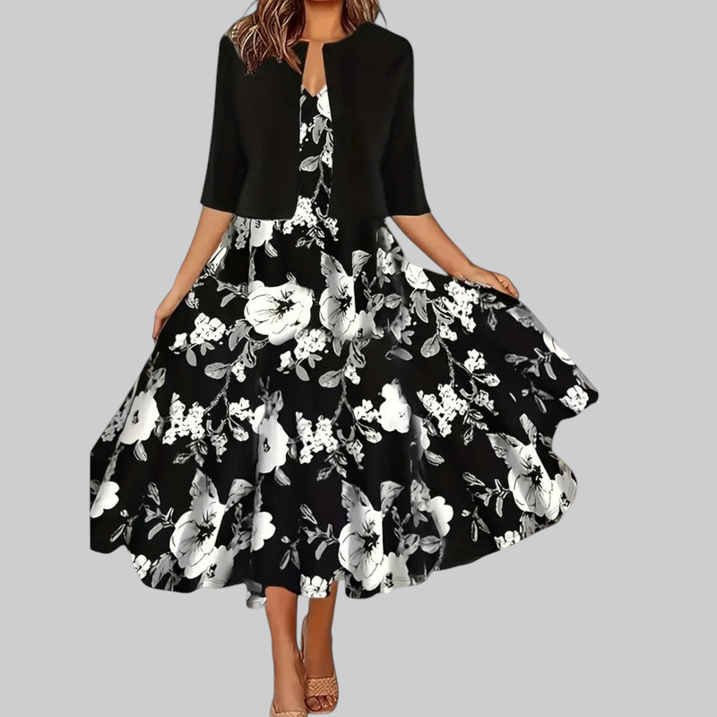 Ljetna haljina Aurora s blejzerom spaja bezvremensku eleganciju s modernim šarmom – idealna za žene koje vode računa o svom stilu tijekom toplih dana. Bilo da je riječ o brunchu, poslovnom sastanku ili večernjem događaju, ova svestrana kombinacija uvijek jamči izvrstan i elegantan izgled.