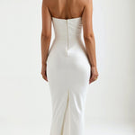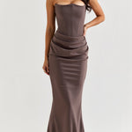 Haljina Fiorella predstavlja samu definiciju bezvremenske elegancije. S korzetom koji je strukturiran i bez naramenica, predivno oblikuje torzo, pružajući sofisticiran izgled, potporu i udobnost u svakom pokretu.