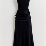 Strateški postavljeni nabori u predjelu struka i bokova naglašavaju prirodne obline, stvarajući ženstvenu i zavidnu siluetu.