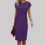 Mina večernja haljina s kratkim rukavima kombinira elegantnu profinjenost s funkcionalnošću prikladnom za svaki dan. Klasičan dizajn lako se prilagođava svakom stilu, bilo ležernom ili svečanom. Zahvaljujući mekanom materijalu, uživat ćete u cjelodnevnoj udobnosti bez odricanja od stila.