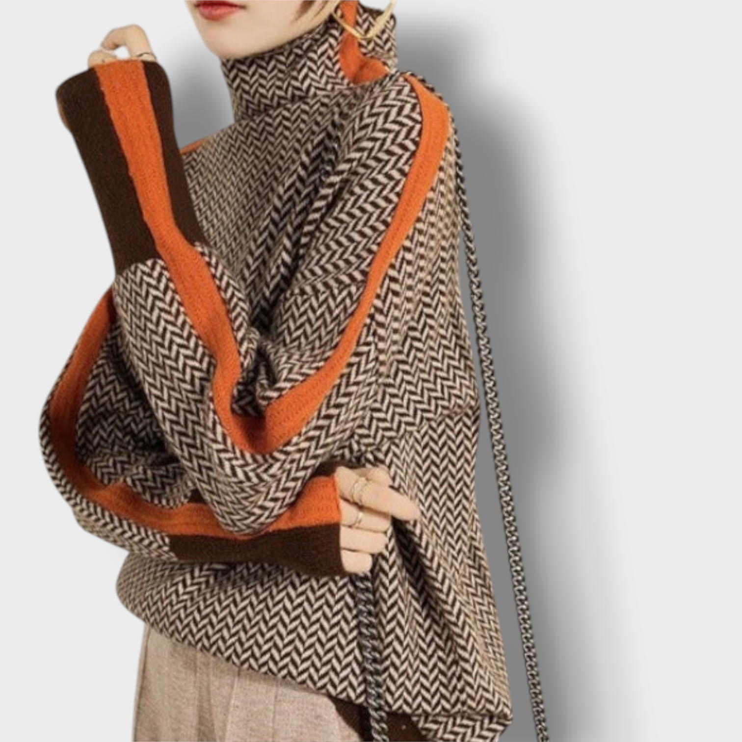 Imaginez… un matin d’automne à Paris, l’air frais, un café chaud à la main. Vous enfilez votre tricot, sentez la douceur rassurante de la maille et l’élégance naturelle de son col monté. Les rayures contrastées ne sont pas seulement un détail : elles sculptent votre silhouette et attirent l’œil avec discrétion et chic.