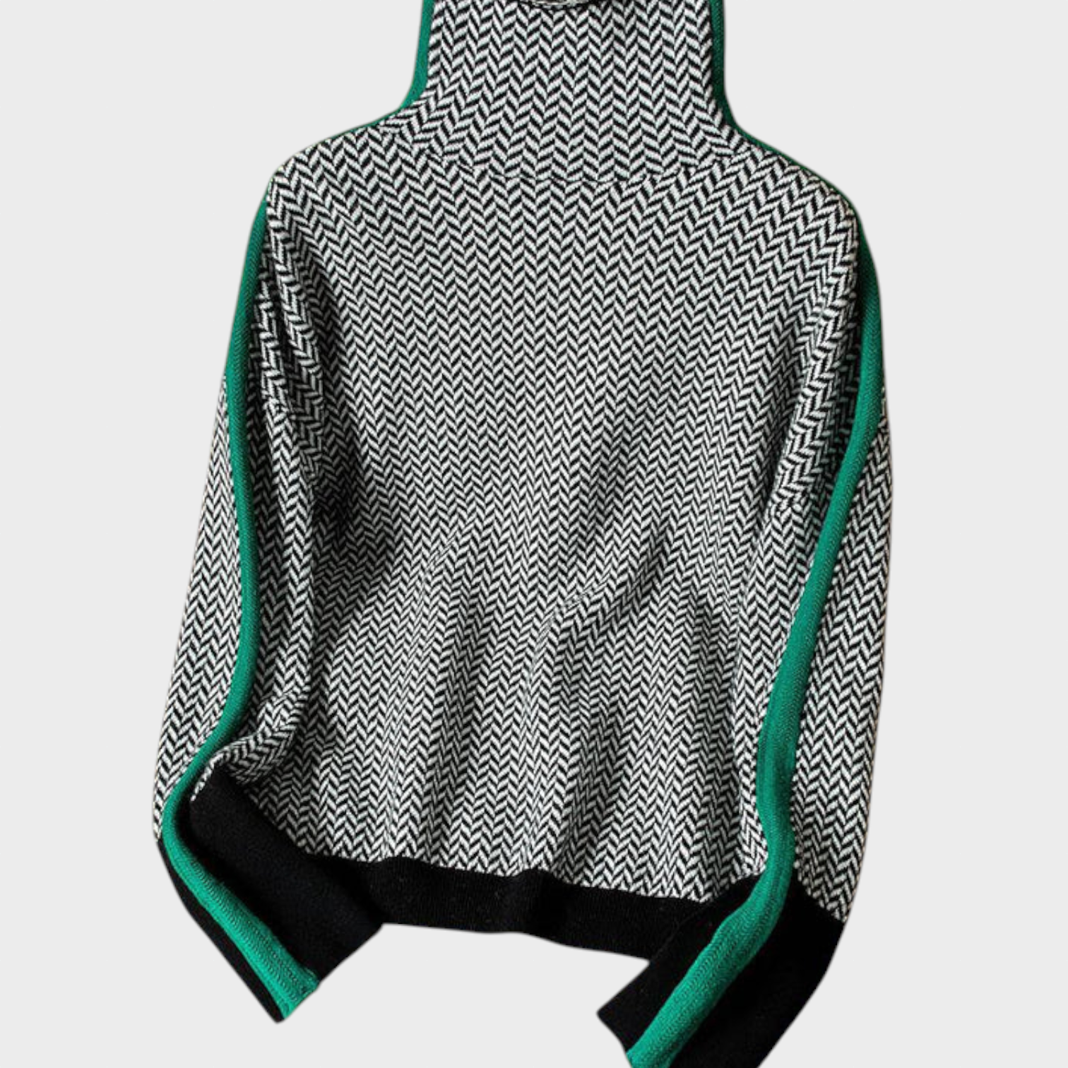 • Ligne élancée — Le col montant et les rayures verticales allongent la silhouette sans effort.
